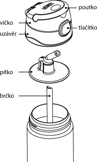 Teplé a studené nápoje se pijí přímo z termosky - bez nalévání do šálku. Nápoj se pije pomocí brčka - není nutné naklánět termosku.